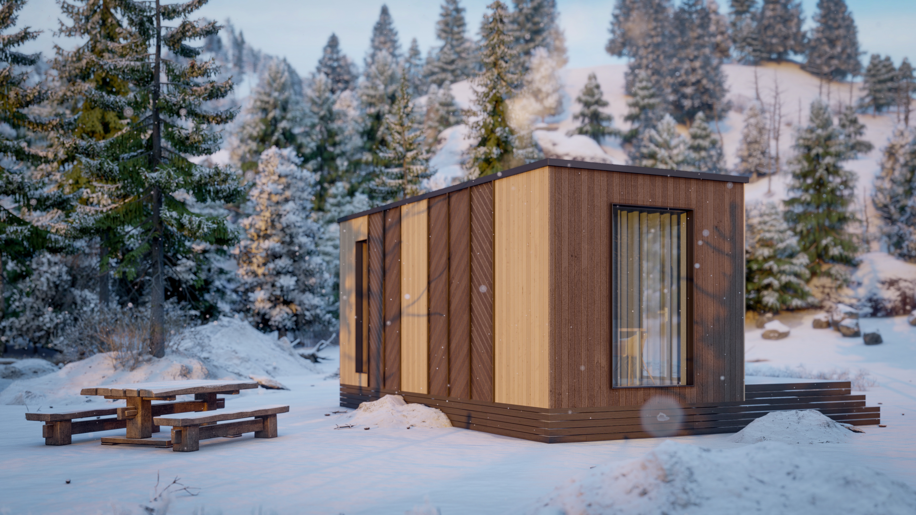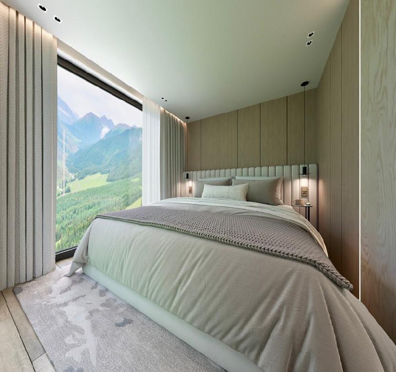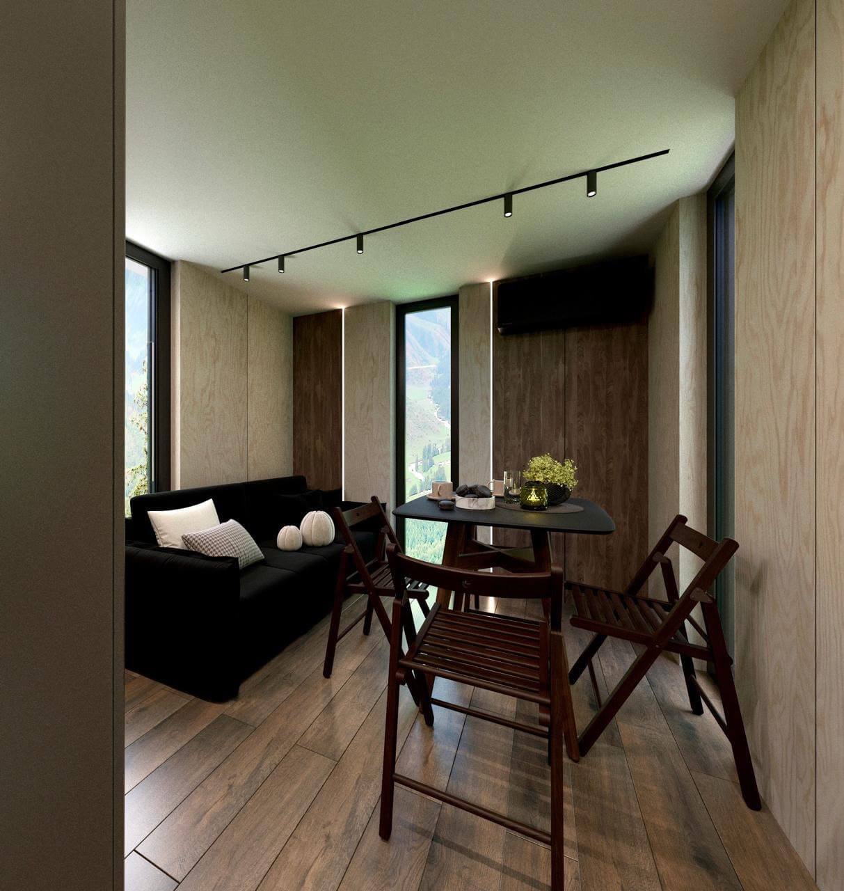 Панорамные окна, возможность выбора конфигурации, двойной стеклопакет с напылением серебра «Solar»