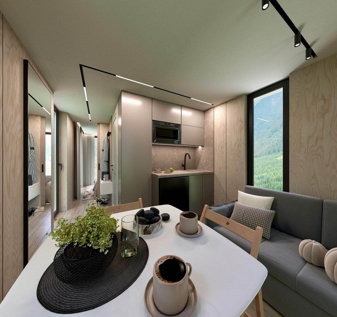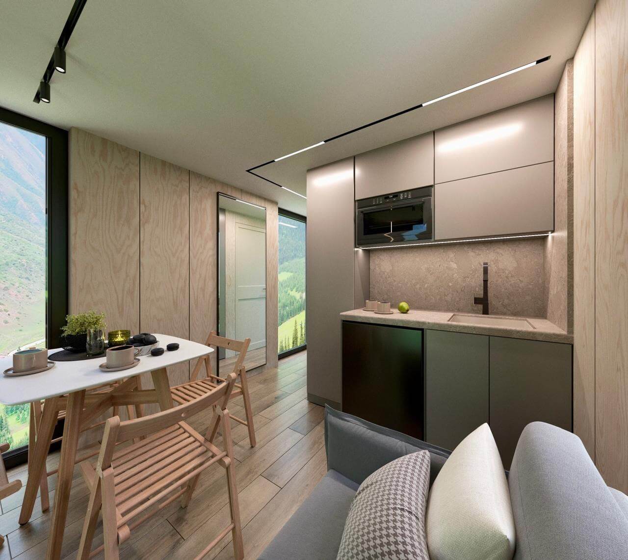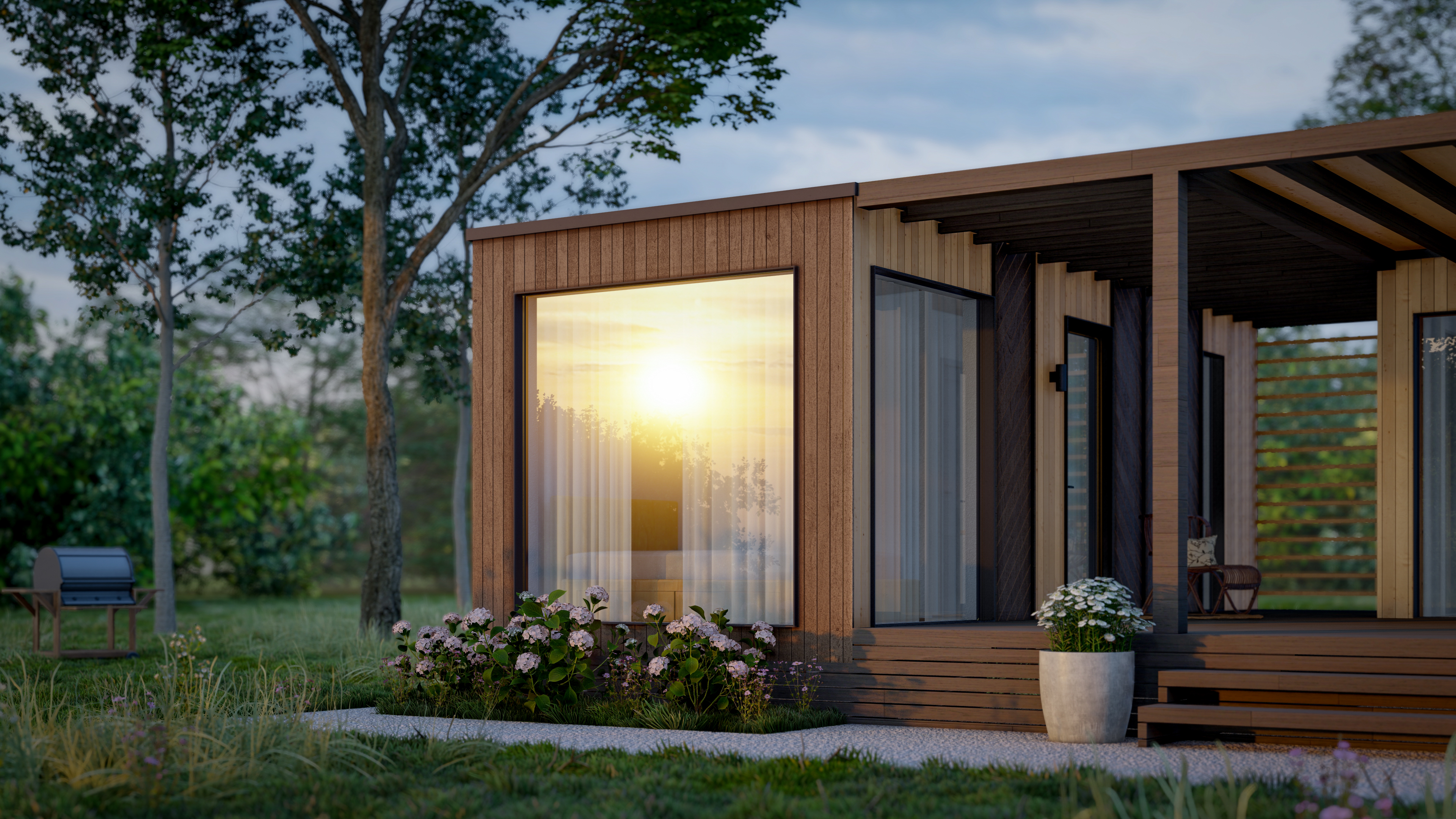 Панорамные окна, возможность выбора конфигурации, двойной стеклопакет с напылением серебра «Solar»